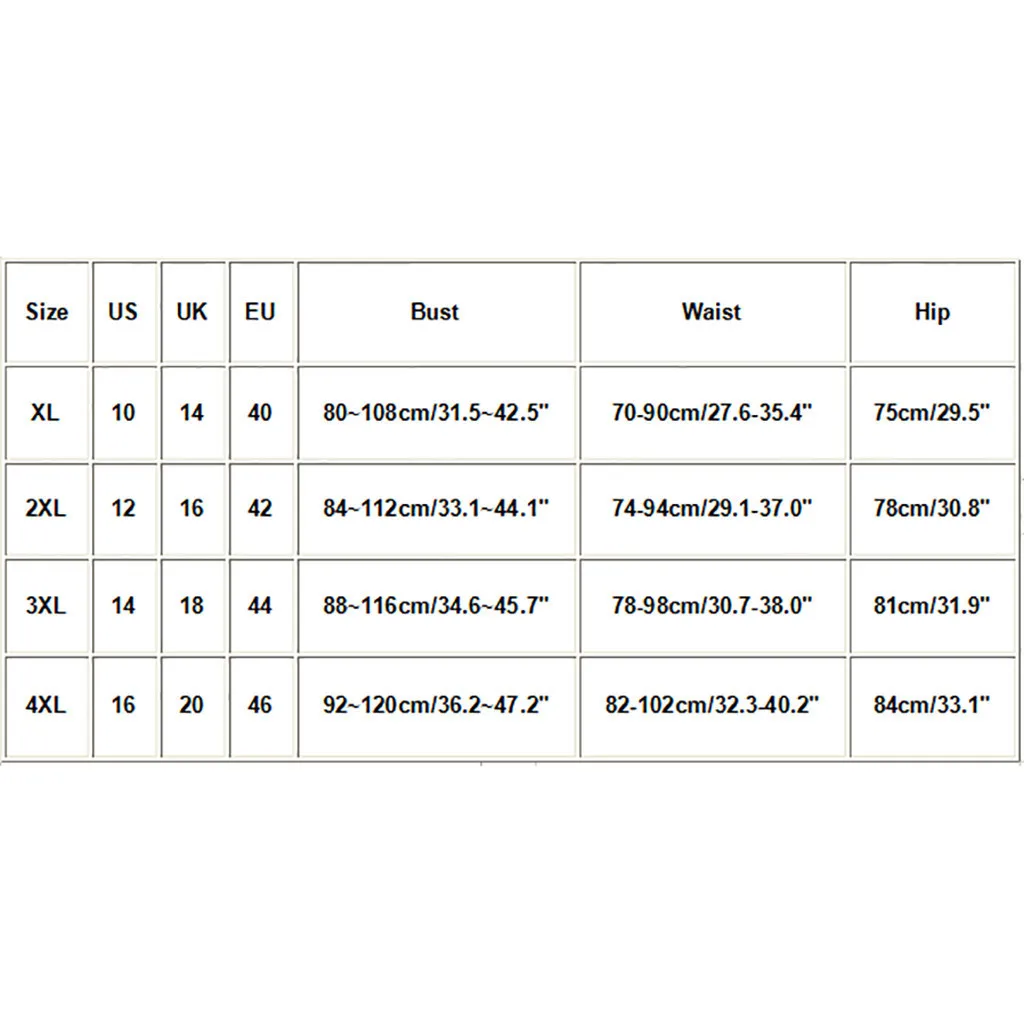 | Size | US | UK | EU | Bust | Waist | Hip |